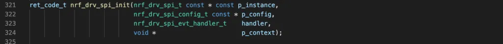static const nrf*drv_spi_t spi = NRF_DRV_SPI_INSTANCE(SPI_INSTANCE);- They initialise the SPI driver by using