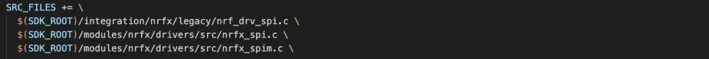 To control the SPI/SPIM peripherals, nRF5 SDK provide the library nrf_drv_spi. In this section, we will look at how to include this library, how to enable SPI/SPIM peripheral in your project configuration.