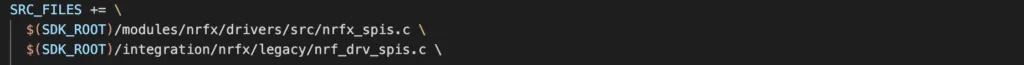 First, you need to include nrfx_spis.c and nrf_drv_spis.c in your source file list. If you are interested in how they are implemented, you can go to the corresponding folder and try to understand their code. Sometimes, you may also need to do that if there’s a bug in a driver that was not known at the time of release.