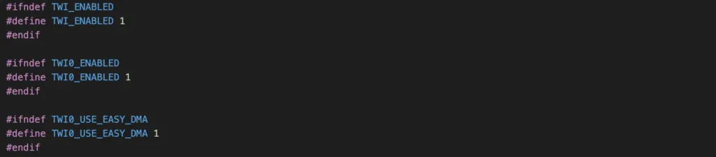 - Enabling the TWIM0 instance in sdk_config.h as described in previous section.