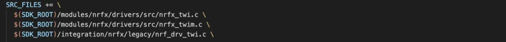 To control TWI/TWIM peripherals, Nordic provides nrfx_twi and nrfx_twim drivers, respectively. You can use these drivers directly in your project. Nordic also provide nrf_drv_twi driver which simplifies your job a little further by choosing whether to use nrfx_twi or nrfx_twim driver behind the scene based on the configuration in sdk_config.h. By default, if a chip only has TWI instances, it will use nrfx_twi driver. If a chip has both TWI and TWIM instances, TWIM will be preferred and nrfx_twim functions are called. In this section, we look at how to include nrf_drv_twi driver in your project and how to enable TWI/TWIM instances in your project.