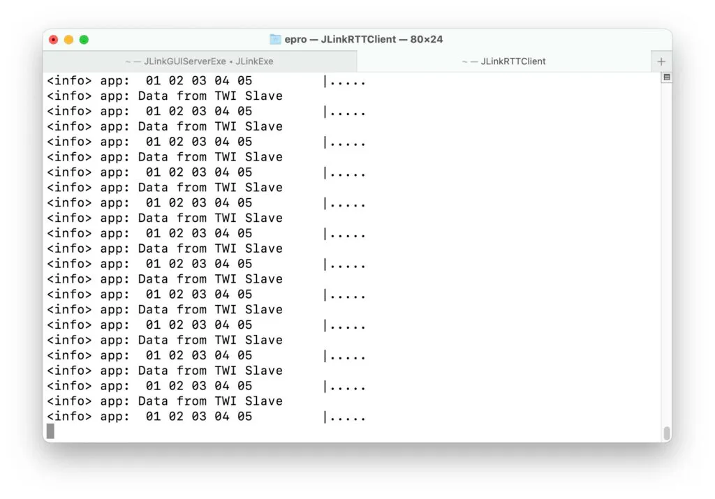 - The TWIM0 will receive 5 bytes of data from the slave and log it on RTT console.